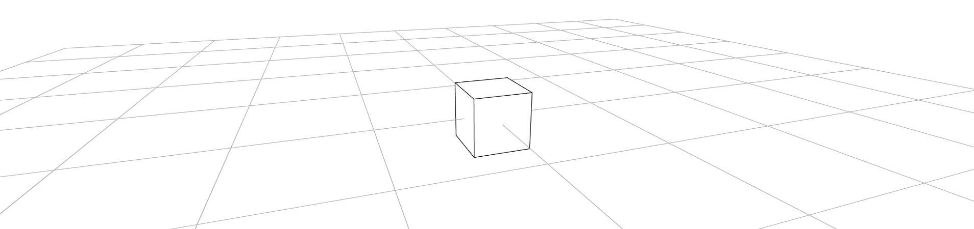 Aufgabe: Versuche, die folgende Szene zu erstellen, indem du eine Box erstellst und sie auf die zehnfache Breite skalierst. Verschiebe die Box anschließend um 25 Einheiten nach oben, so dass sie auf dem Gitter aufliegt: