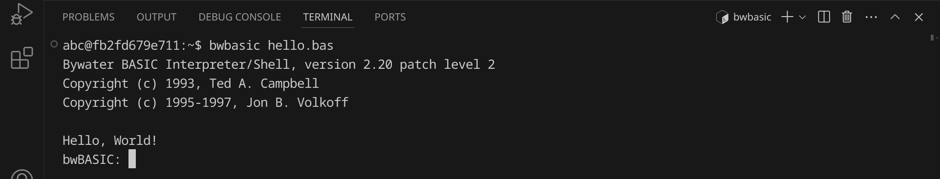bwbasic hello.bas