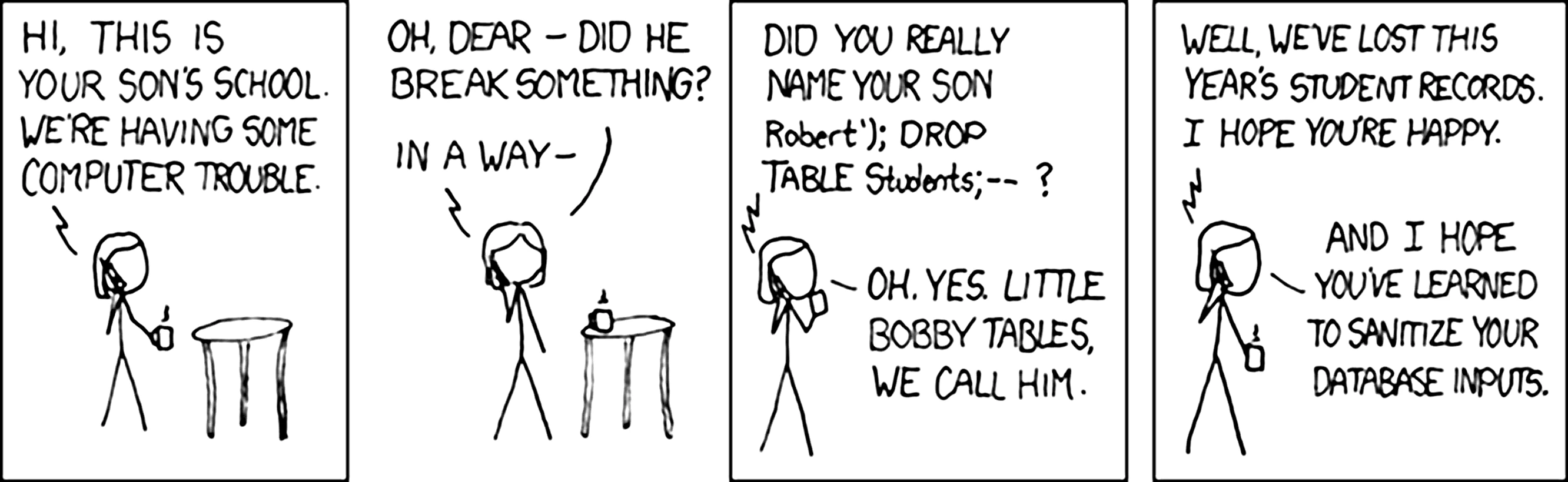 Wie du siehst, kann es gefährlich werden, wenn man Nutzereingaben blind vertraut. Es ist daher bei sicherheitskritischen Systemen notwendig, alle Eingaben mit einer gesunden Portion Misstrauen zu betrachten. Das Problem liegt hier auf der Seite der Software, die solche Angriffe zulässt.