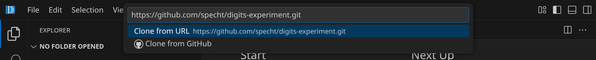 Für diese Anleitung brauchst du ein Repository, das du klonen kannst, indem du auf den blauen Button »Clone Repository« klickst. Gib die folgende URL ein und bestätige mit Enter: