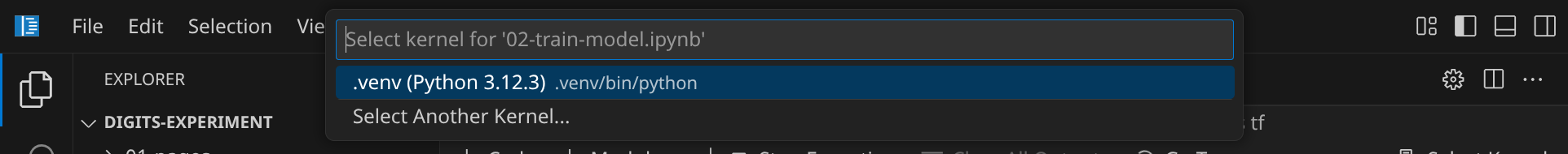 Bevor der Code ausgeführt werden kann, musst du noch einen Python-Interpreter auswählen. Bestätige die Auswahl »Python Environments« und »★ .venv (Python 3.12.3)«: