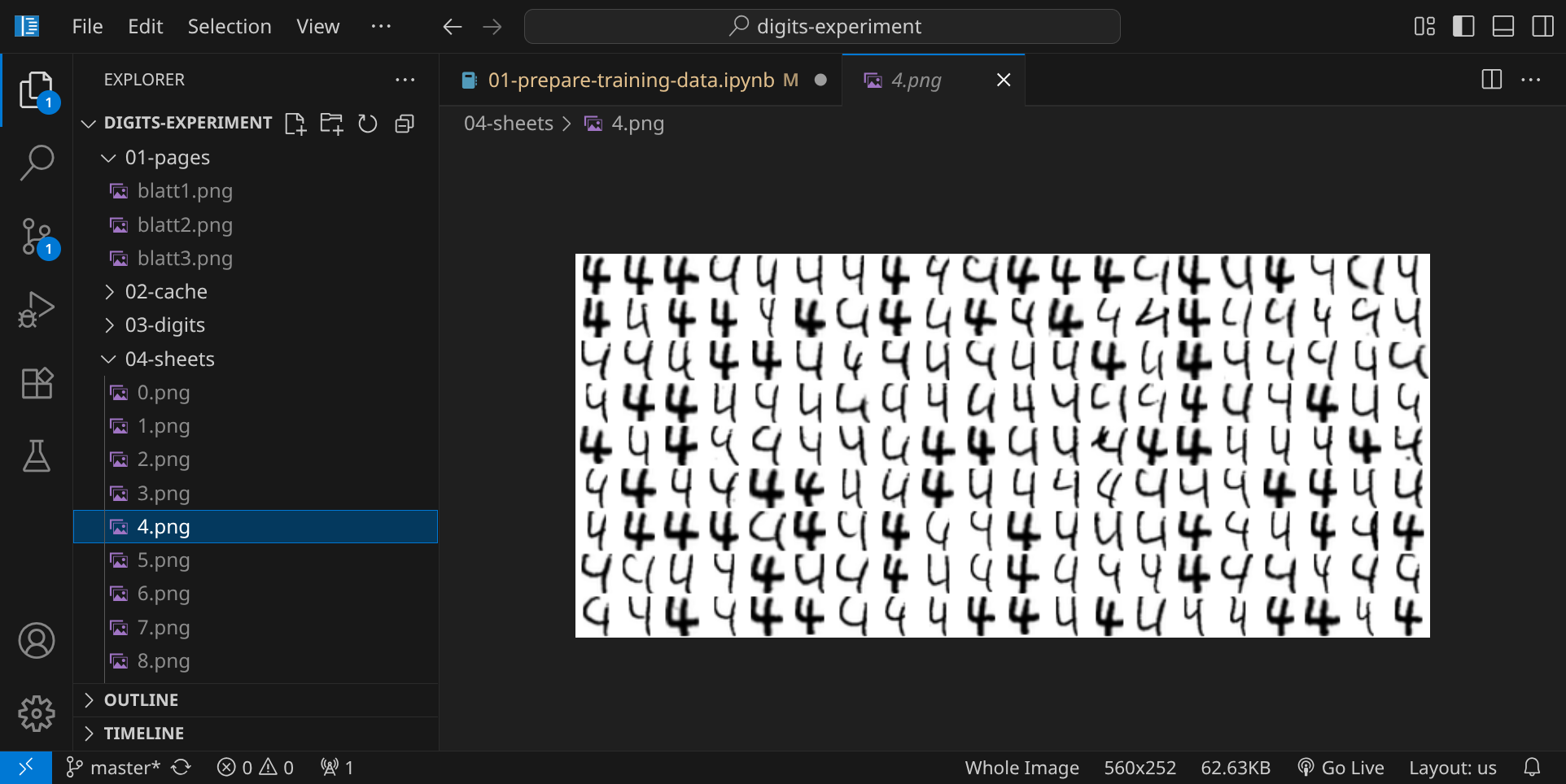 Im nächsten Schritt werden 10 Bilddateien generiert, in denen die einzelnen Ziffern gesammelt werden: