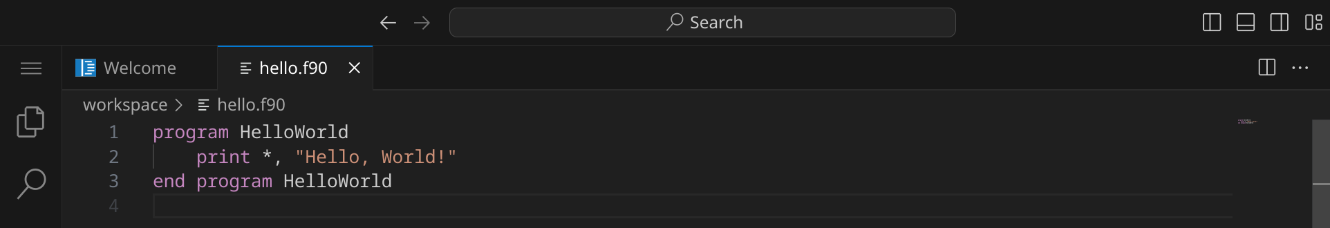 program HelloWorld print *, "Hello, World!" end program HelloWorld |
