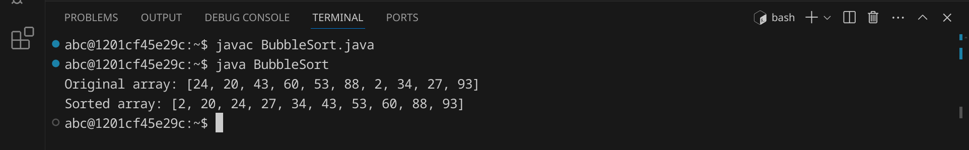 Speichere die Datei unter dem Namen BubbleSort.java. Kompiliere das Programm: