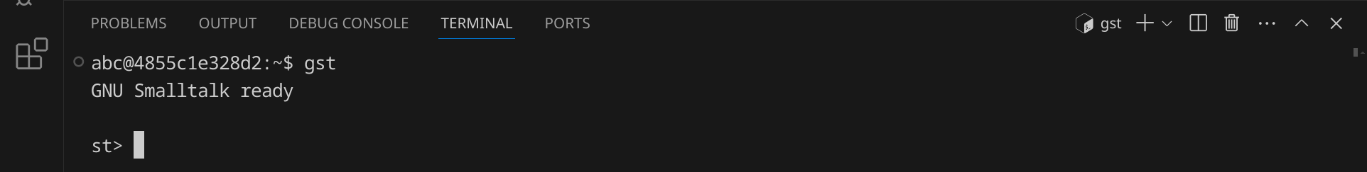 Starte nun die Smalltalk-Shell, indem du gst eingibst und dann Enter drückst. Du solltest eine Ausgabe wie diese sehen: