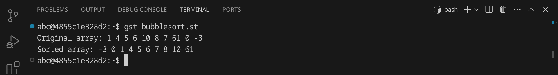 Speichere das Skript unter dem Namen bubblesort.st und führe es aus: