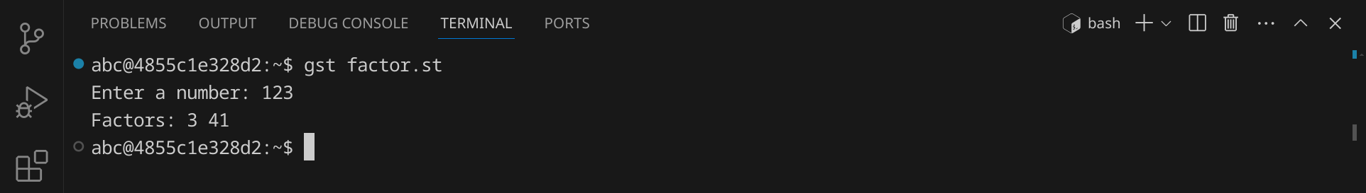 Speichere die Datei unter dem Namen factor.st und führe sie aus: