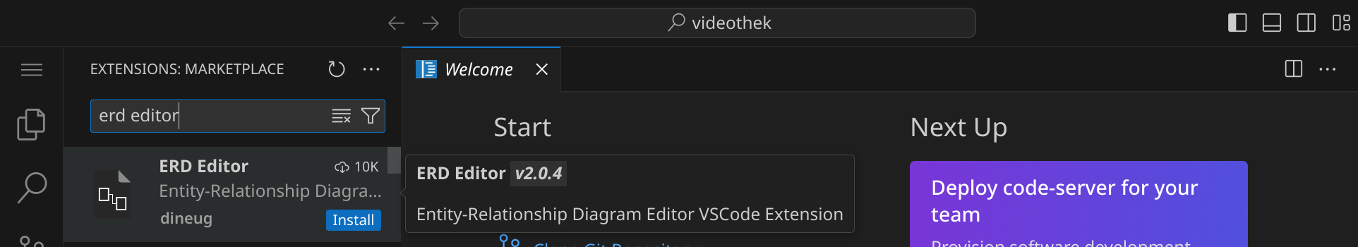 in der Seitenleiste oder drücke StrgShiftX. Suche nach der Erweiterung »ERD Editor« und installiere sie.