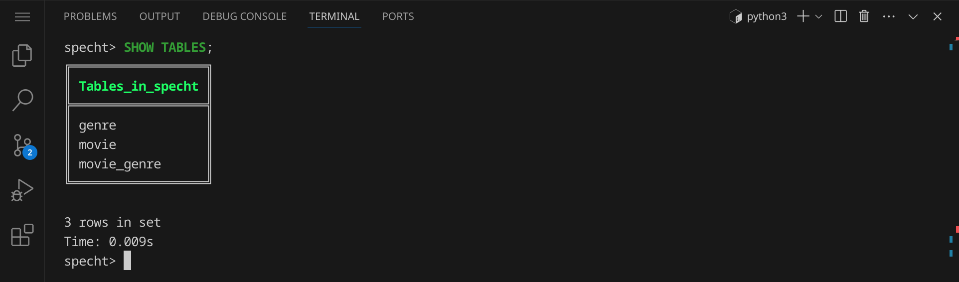 Du kannst nun mit mycli überprüfen, ob die Tabellen korrekt erstellt wurden: